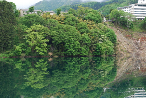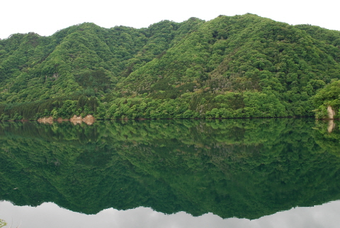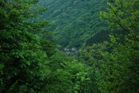 니가타로 넘어가는 國道에서 겨우 바래다 보이는 群馬県の法師.温泉 여름에는 푸르름 속에 갇히고, 겨울에는 새하얀 눈으로 갇혀진다.