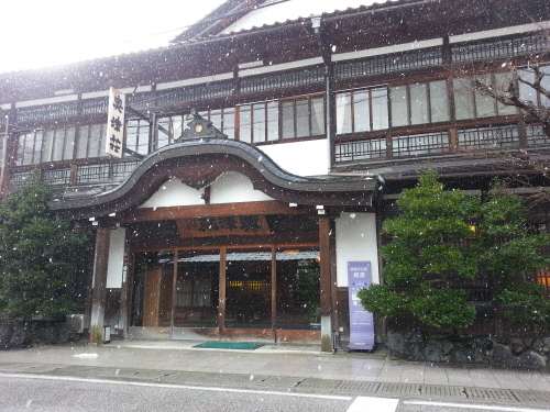 한다. 온천여관이 외관이 멋지다. 눈이 오는 모습이 멋짐을 더한다.