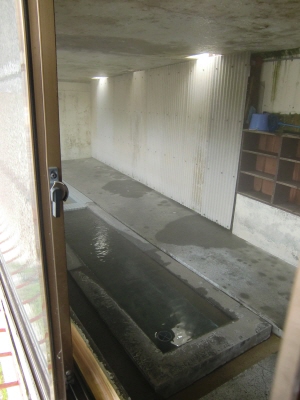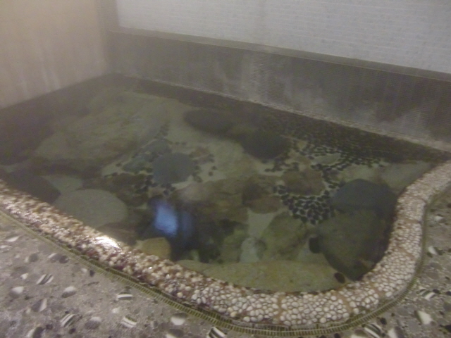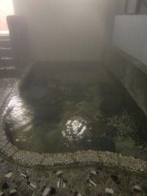 바닥에서 온천수가 솟아나고 온천욕조를 돌로 잘 꾸며 놓았다. 온천수가
